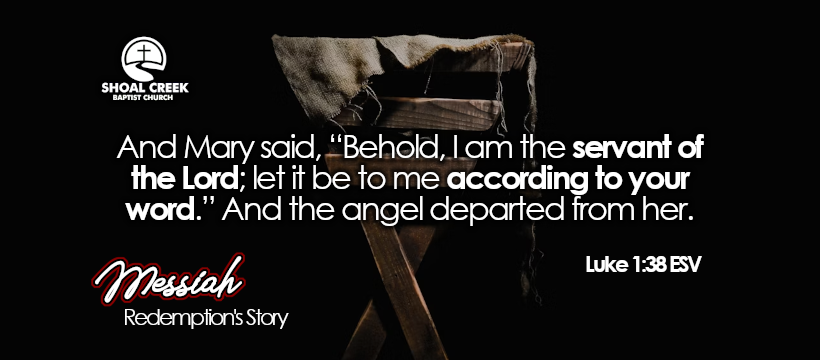 And Mary said, “Behold, I am the servant of the Lord; let it be to me according to your word.” And the angel departed from her. (Luke 1:38 ESV)